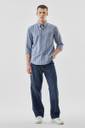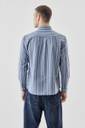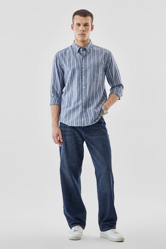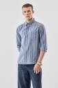 This men's blue striped shirt is crafted from a breathable cotton-linen blend, offering a regular fit and timeless button-down collar. Designed for casual and semi-formal occasions, it features full sleeves, a chest pocket, and a curved hem for versatile styling. Perfect for all-day comfort and effortless elegance.