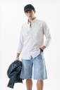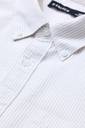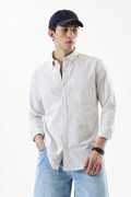 This slim-fit shirt features beige pinstripes on a crisp white base, crafted from 100% cotton for comfort and breathability. Designed with a button-down collar, full sleeves, and a patch pocket, it’s perfect for casual and formal occasions. The smooth texture and curved hem add a touch of elegance.