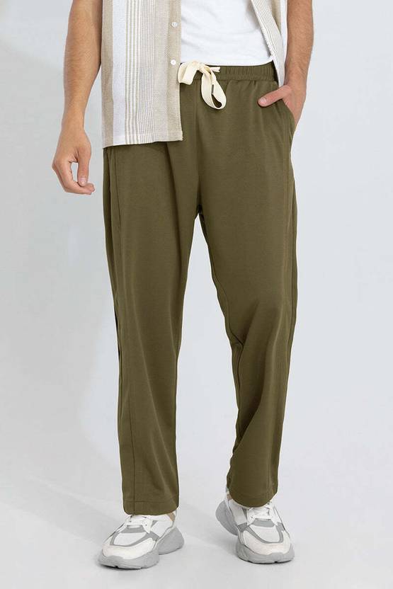 Men Relaxed Green Cotton Blend Trousers