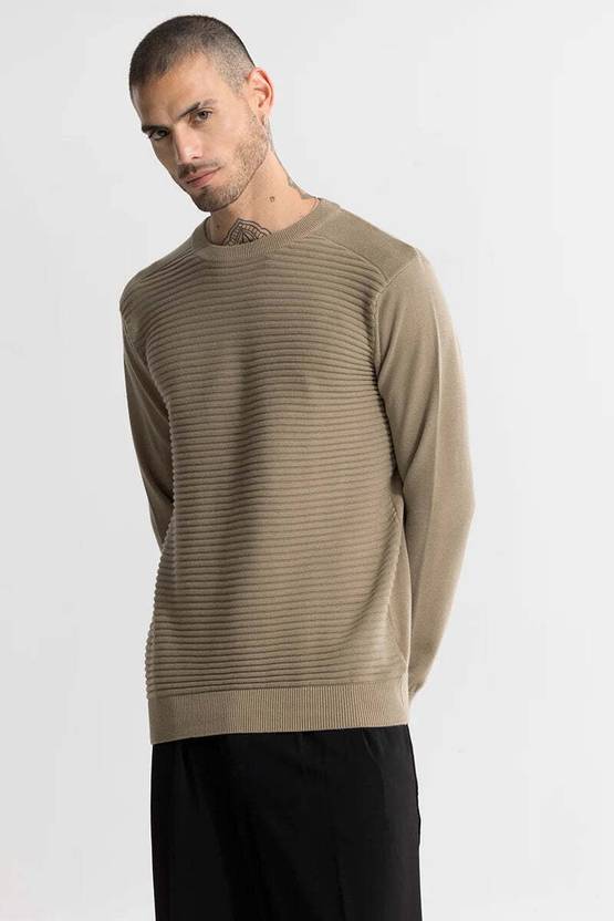 Snitch Self Design Crew Neck Casual Men Beige Sweater
