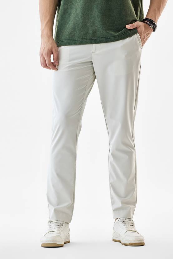 Crafted from a high-stretch nylon blend, these slim-fit trousers offer a smooth texture and a tailored silhouette. Designed for comfort and versatility, they feature a mid-rise waist and wrinkle-free fabric, making them perfect for casual outings or relaxed workdays.