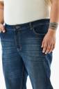 Slim Fit Thigh, Medium Stretch Fabric, Turned-Up Cuffs, Button and Zip Closure, Denim Weave