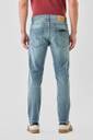 Light Distressed Design, Slim Fit Silhouette, Durable Cotton Blend Fabric, Mid Rise Waist, Button and Zip Closure