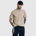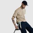 Men Solid Crew Neck Cotton Blend Beige T-Shirt