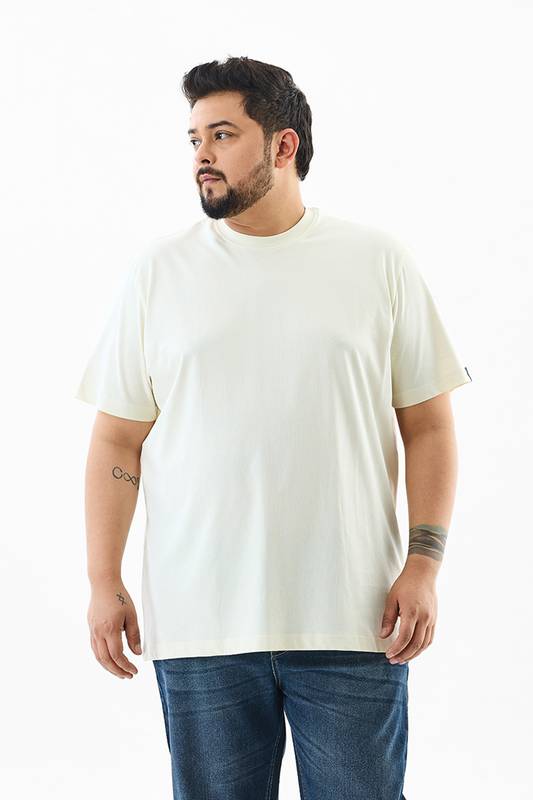 This men's light cream T-shirt is crafted from 100% cotton, offering breathable and durable comfort. Designed in a regular fit with a crew neck and short sleeves, it suits casual outings and relaxed settings. The minimalist solid design makes it a versatile wardrobe staple for everyday wear.