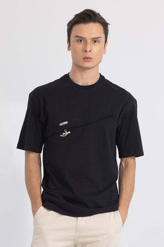 Snitch Men Solid Round Neck Cotton Blend Black T-Shirt