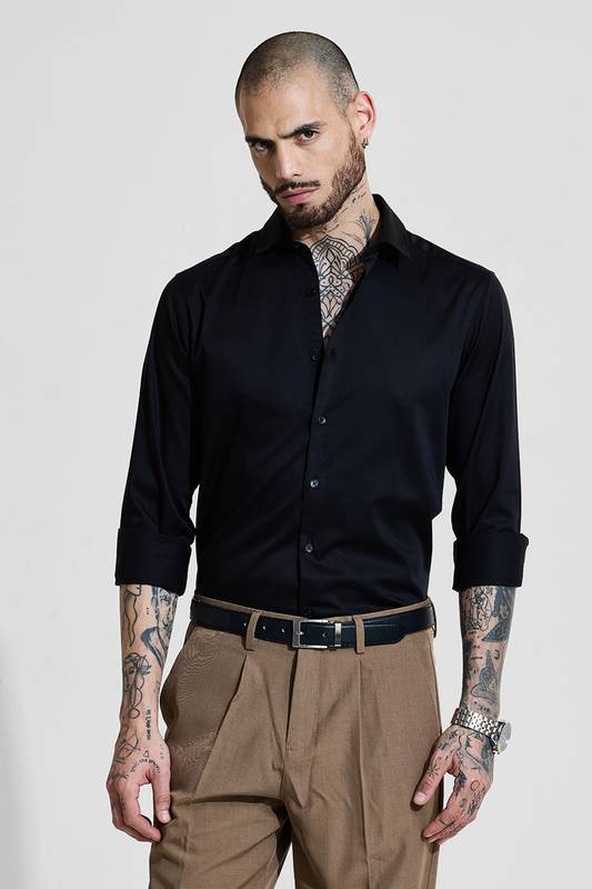 Keep it simple and sleek with this black Snitch T-shirt. Crafted from a cotton blend, this slim-fit regular tee features a solid pattern for a timeless look.