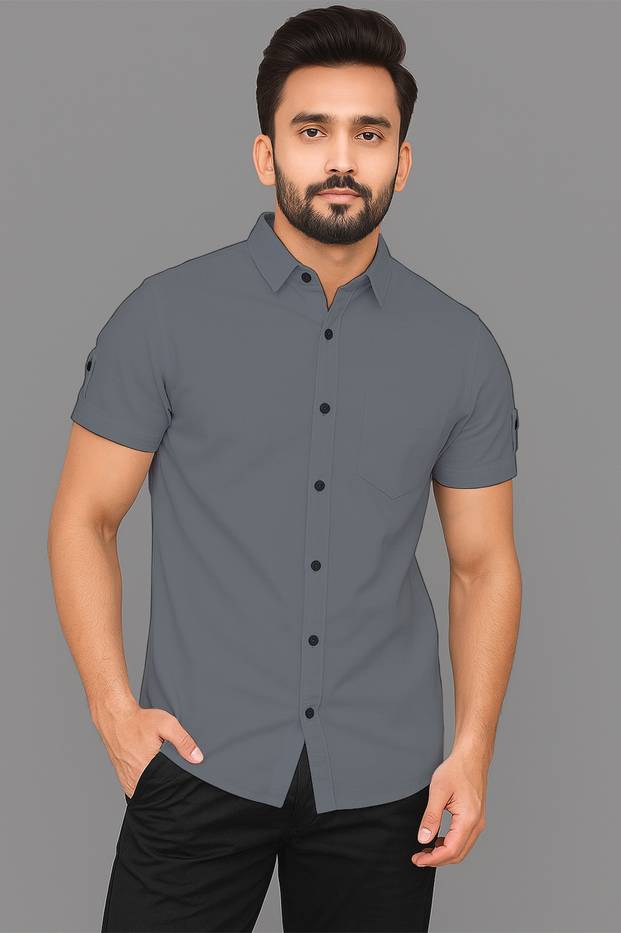 SNKV TRENDS Men Solid Casual Grey Shirt