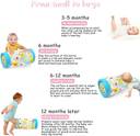 FUNNY TUMMY TIME:The crawl roller toy has a unique smooth contoured surface that is designed for infants 3-18 months old to rest comfortably on their stomach while safely developing and exploring. This rolling toy ball takes mobility of infants to a new level.