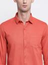 Crafted from cotton fabric. It keeps you at ease all day long. II Solid Patterned with spread collar, full sleeves and button down front II Fit Type: Regular Fit II Suitable for Casual wear II Garment Care: Machine Mild Wash/Warm iron on reverse/wash similar colors together.