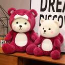 Adorable Stuffed Bear: This 30cm plush teddy bear is designed with a charming appearance, featuring a vibrant magenta colour and a cute bear face.
