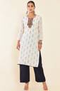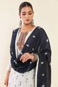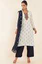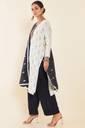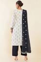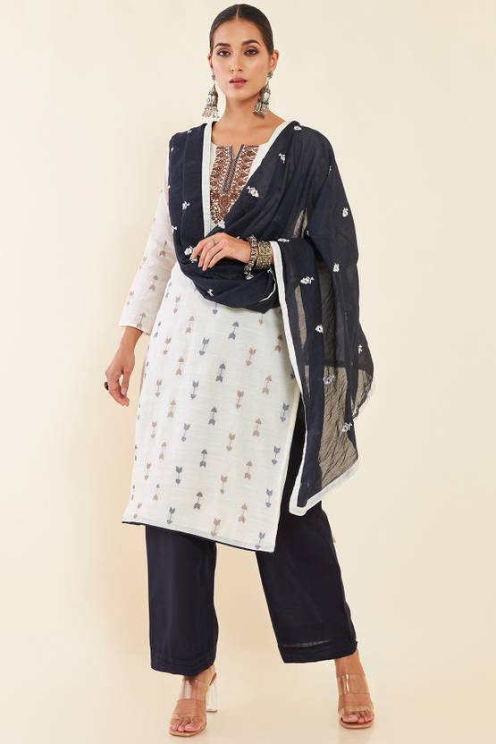 Soch Womens Cream Geometric And Floral Cotton Unstitched Dress Material With Blue Dupatta