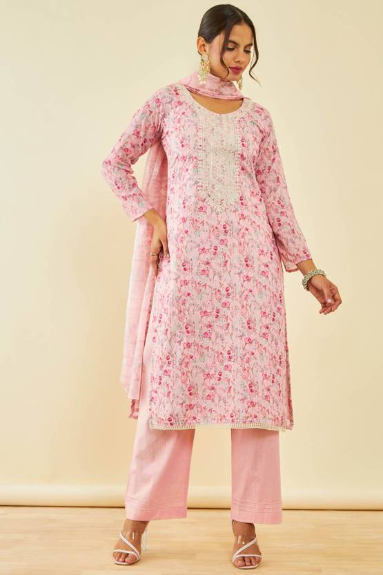 Soch Womens Pink Cotton Embroidered Dress Material With Sequins