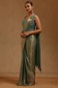 Soch Womens Teal Green Organza Solid Ready To Wear Saree