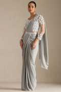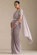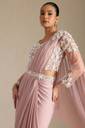 Elevate your fashion game with our elegant and convenient ready-to-wear saree. Our blush pink nylon blend solid ready-to-wear saree with bead detail, designed for comfort and style. This dreamy piece drapes beautifully and falls gracefully around your body, making it perfect for any occasion. Wearing this ready-to-wear saree is a breeze- simply roll it and hook it on. In just three easy steps, you’re ready to shine! The saree comes with a stylishly embellished designer blouse that perfectly complements its soft glam pink hue, and the bead details on this rich hue saree add a texture and sparkle, making it ideal for parties and casual gatherings. Invest in this ready-to-wear saree to make heads turn.