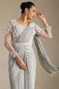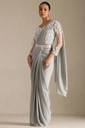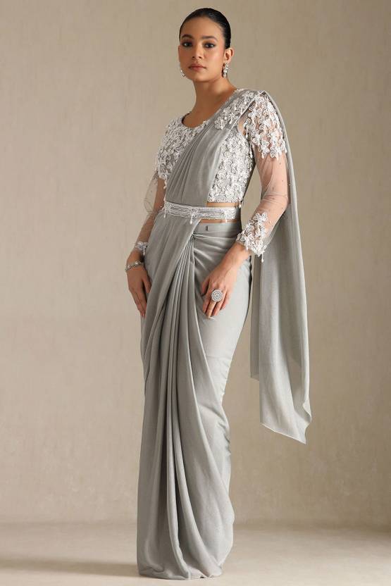 Soch Womens Grey Nylon Blend Solid Ready To Wear Saree With Beads