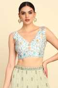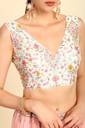 Create a fascinating outfit with our cream art silk princess line cut padded blouse featured in floral print detailed with zari work, has v-neck and sleeveless with add-on unstitched sleeves, secured along hook & eye back closure. This women's blouse can be paired with a variety of saree of your choice either contrasting or matching, and is ideal for evening wear, parties, and weddings.