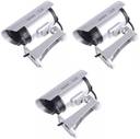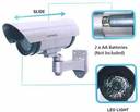 - Dummy Security Cameras can be used to augment your existing security system by creating the impression that you have more camera coverage than is actually installed. - They can also be used to temporarily replace faulty cameras in case spares are not available while repairs are being performed. - This dummy camera is designed to look like silver, wired IR bullet camera and includes a flashing red LED to indicate camera activity. - The square base is suited for mounting on a vertical surface and can be adjusted for the correct camera orientation. - The base includes a hole for inserting the dummy data/power cable for that extra, realistic detail. - A plastic hood emulates a sun shield for the dummy camera lens. - Requires the use of two AA batteries (not included) for LED activity.