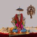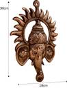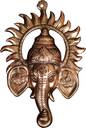 Soft Art Wall Hanging Ganesh Ji face Encircled With Suraj Ji Best for Housewarming Gift Decorative Showpiece - 30 cm (Brass, Brown)