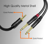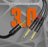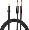 Softline Pro SPY03 3.5MM Stereo to 2 x 6.3MM Jack Mono 10 Ft / 3 Meter Cable Universal Compatibility Audio Equipment Gold Plated AUX (Black)