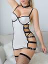 Sexy Lingerie Women's for Sex, Sexy Wetlook Mini Dress Leather Patent Zip Deep V-Neck Stretch Clubwear Fetish Party Dress Patent Leather Pole Dance Open Crotch Braces Dress