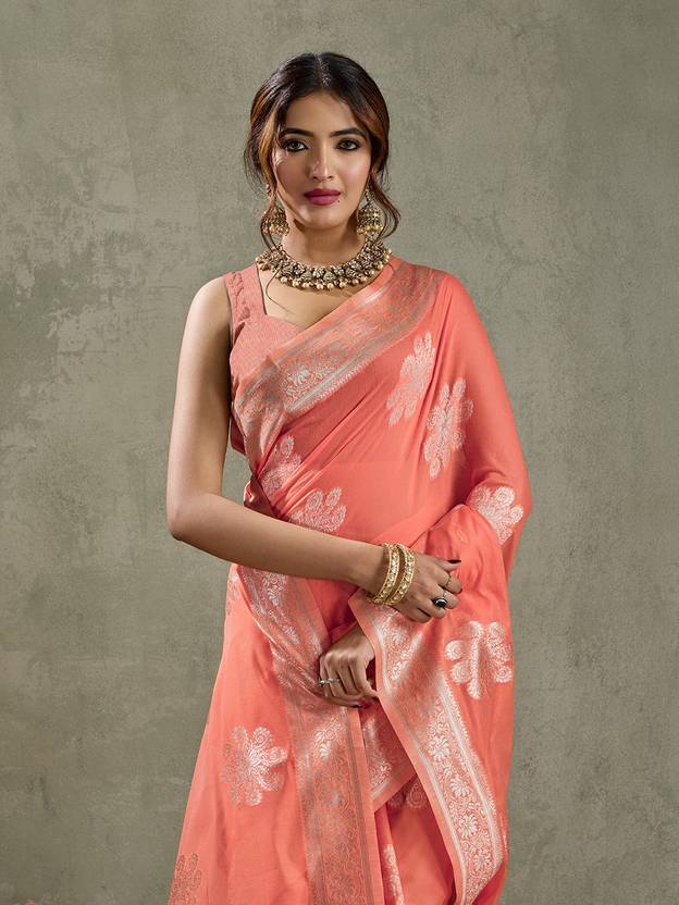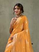SOHINI NX Woven Banarasi Pure Cotton Saree (Orange)