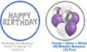 SOI Happy Birthday Letter Toy Foil Balloon Set with 30 HD Metallic Purple Silver White Balloons Kit with Ribbon (Set of 43)