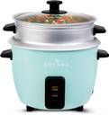 Solara OneTouch 400W Electric Rice Cooker with Steam & Rinse Basket, Automatic Rice Cooker, Food Steamer (1 L, Aqua)