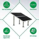 The Adjustable Solar Stand Mounting Frame by Solar Tech is designed for solar panels ranging from 225 to 300 watts. This robust frame allows for precise angle adjustments with an elevation range of 60 to 65 degrees, optimizing solar exposure for maximum energy capture. With an adjustable height between 83 cm and 50 cm, it offers flexibility to accommodate various installation needs. Crafted from heavy-duty PosMAC metal, this stand ensures durability and longevity, boasting a remarkable lifespan of up to 40 years. Its sturdy construction and adjustable features make it an ideal choice for reliable and efficient solar panel mounting.
