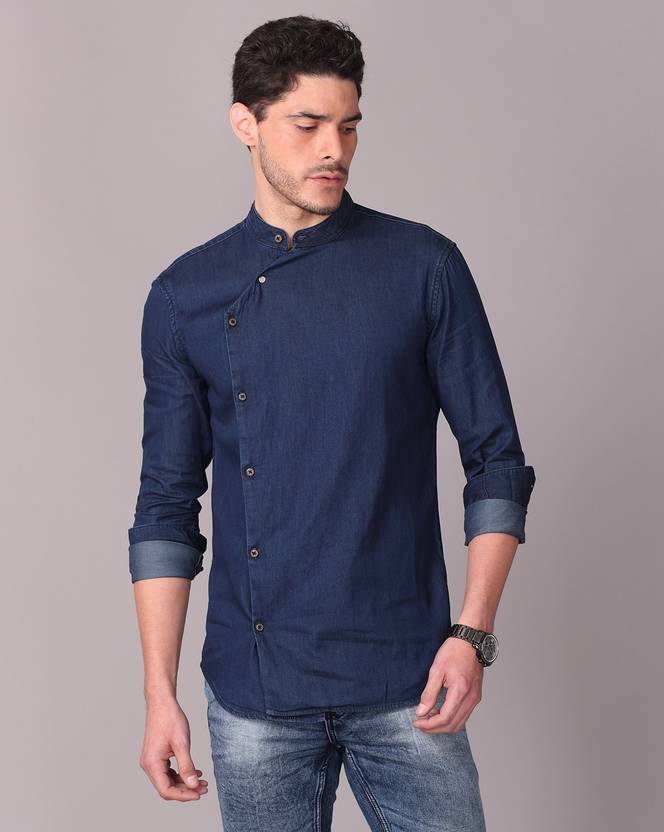 Men Slim Fit Solid Mandarin Collar Casual Shirt