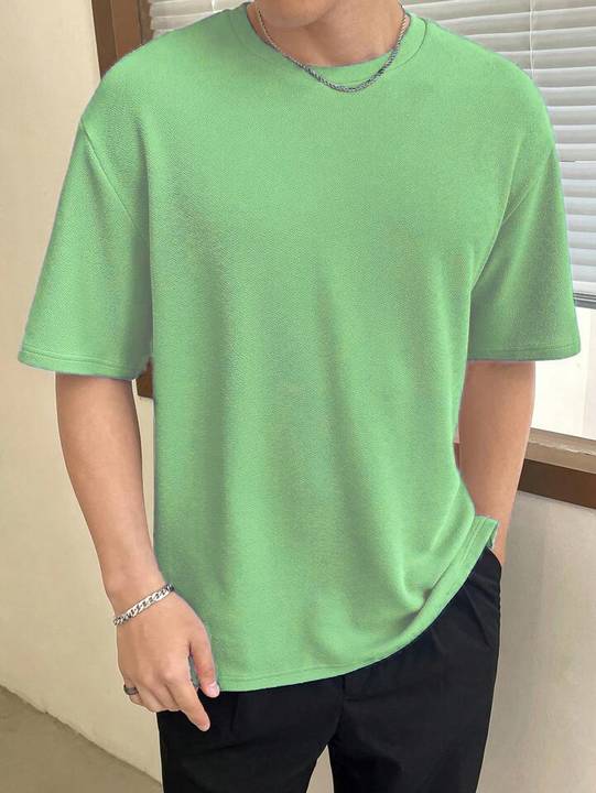 1. Elevate your casual wardrobe with our Textured Imported Fabric Solid Stretchable T-shirt for men.