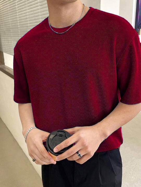 1. Elevate your casual wardrobe with our Textured Imported Fabric Solid Stretchable T-shirt for men.