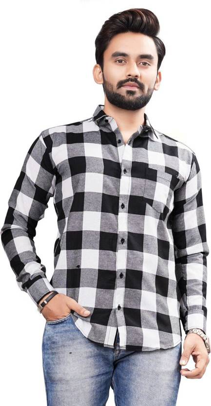 Men Regular, Super Slim Fit Checkered Curved Collar Casual Shirt