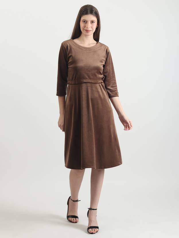 Soma Enterprises Women Fit and Flare Brown Knee Length Dress