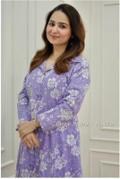 This Kurta features a collared neck design, adding an element of elegance to its look. Its printed pattern offers a stylish look that can be dressed up or down. The set's overall design is intended to be both fashionable and functional, making it a versatile addition to any wardrobe. Appreciate the blend of style and practicality with this elegant kurta palazzo set.