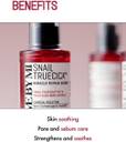 A snail serum with 890,000 ppm of Snail Truecica™ containing black snail secretion extract water, soothes the sensitive skin from external stimuli or stress and cares for skin issues to help improve skin's natural strength.