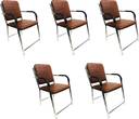 SOMRAJ Office Visitor Chair with arm Rest with Steel Frame and Cushioned seat Back Leatherette Office Visitor Chair (Brown, Set of 5, Pre-assembled)