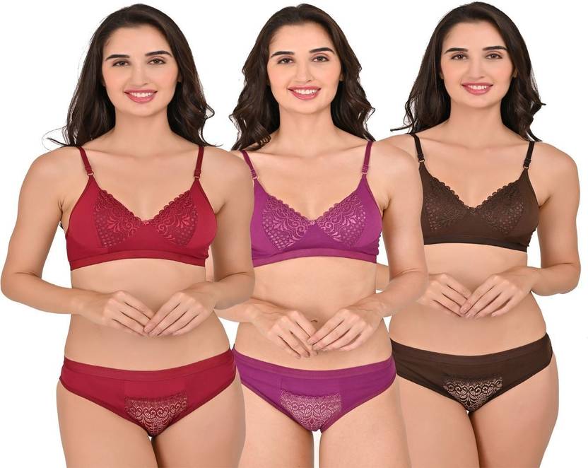 Bra & Panty Set Solid Multicolor Lingerie Set