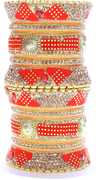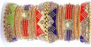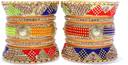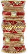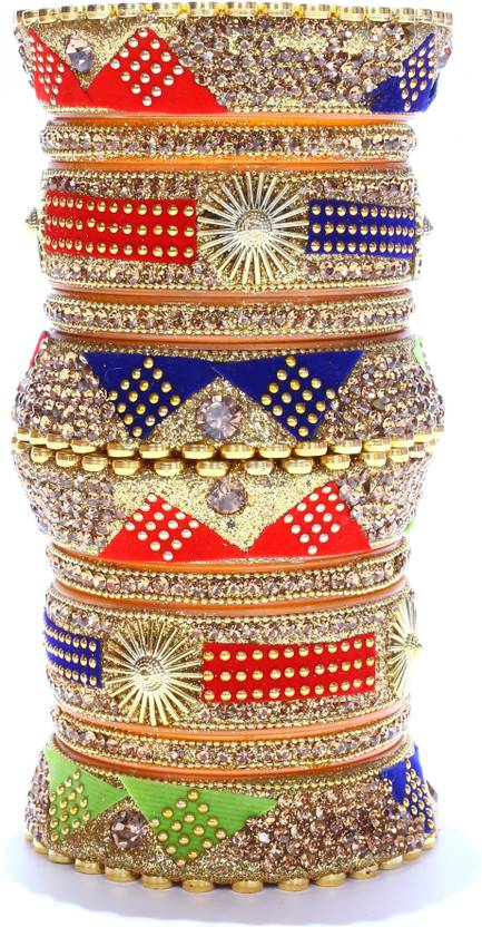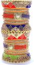 Get the elegant look by coupling this beautiful set of bridal choora with an ideal ethnic outfit. These amazing designed studded with best quality of coloured and golden stones. This piece of chura comes with the Anjali Collection assurance of quality and durability.Caring for your bridal jewellery: We, at Anjali Collection, take care of every piece of chura so that you don't spend hours caring for them. But do remember, Chura lasts longer when kept dry and free of chemicals. Material : Hand painted ,pearl, Rich kundan work n Beautiful carving on Acrylic plastic n boor. Size:- 2.2,2.4,2.6,2.8.