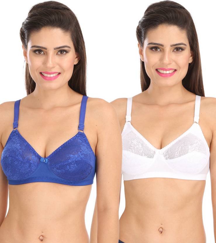 T-Shirt Full Coverage Lace Non-padded Non-Wire Bra for Women Pack of 2