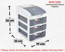 Sonal SPACIA_3 (Mini Size) Multipurpose Organizer Drawers | Size(25x22x17)cm | Plastic Free Standing Chest of Drawers (Finish Color - Grey, Door Type- Levered, Pre-assembled)