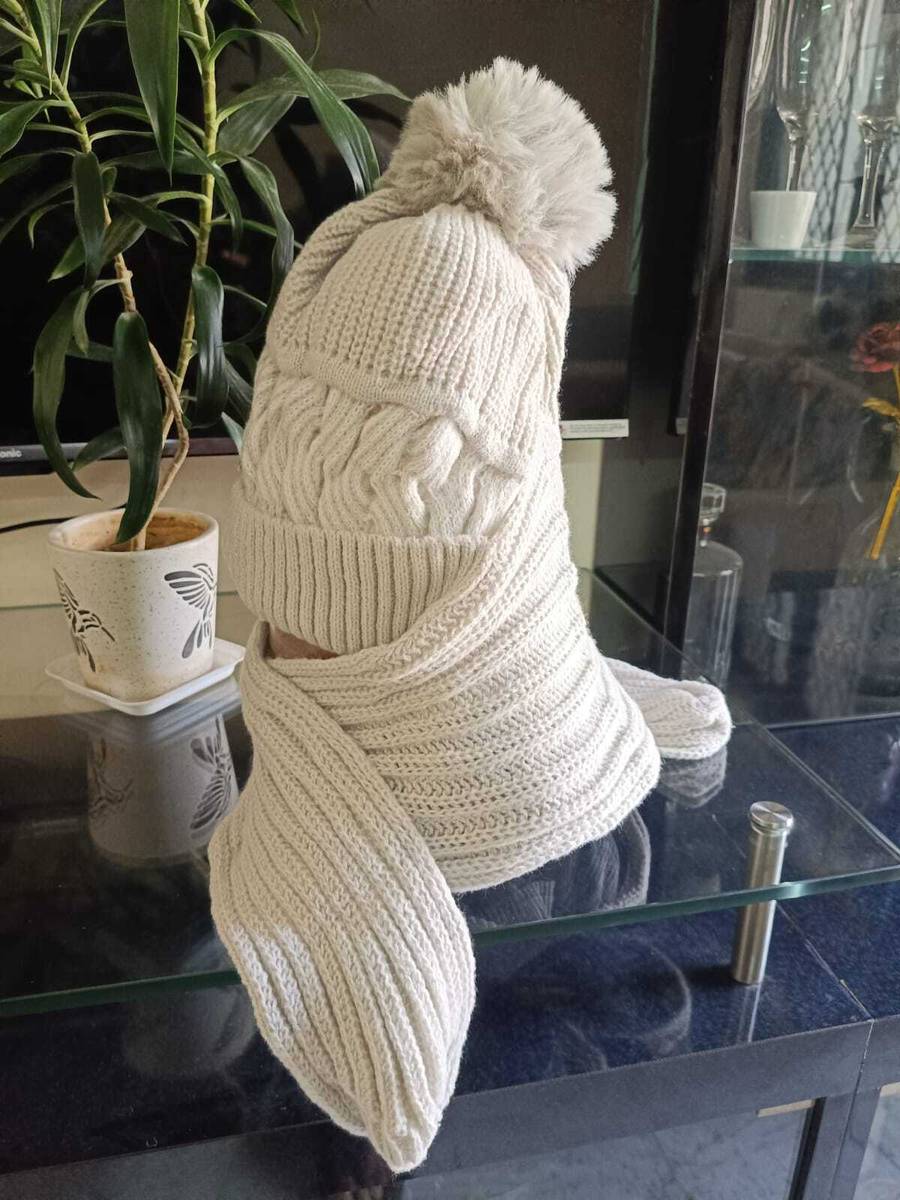 Women Woollen Cap Cum Muffler | Winter Knitted Beanie with Scarf | Soft & Warm | Free Size.