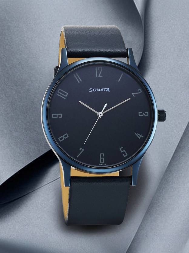 SONATA Blues Sonata Blues Quartz Blue Dial Blue Leather Strap Analog Watch - For Men