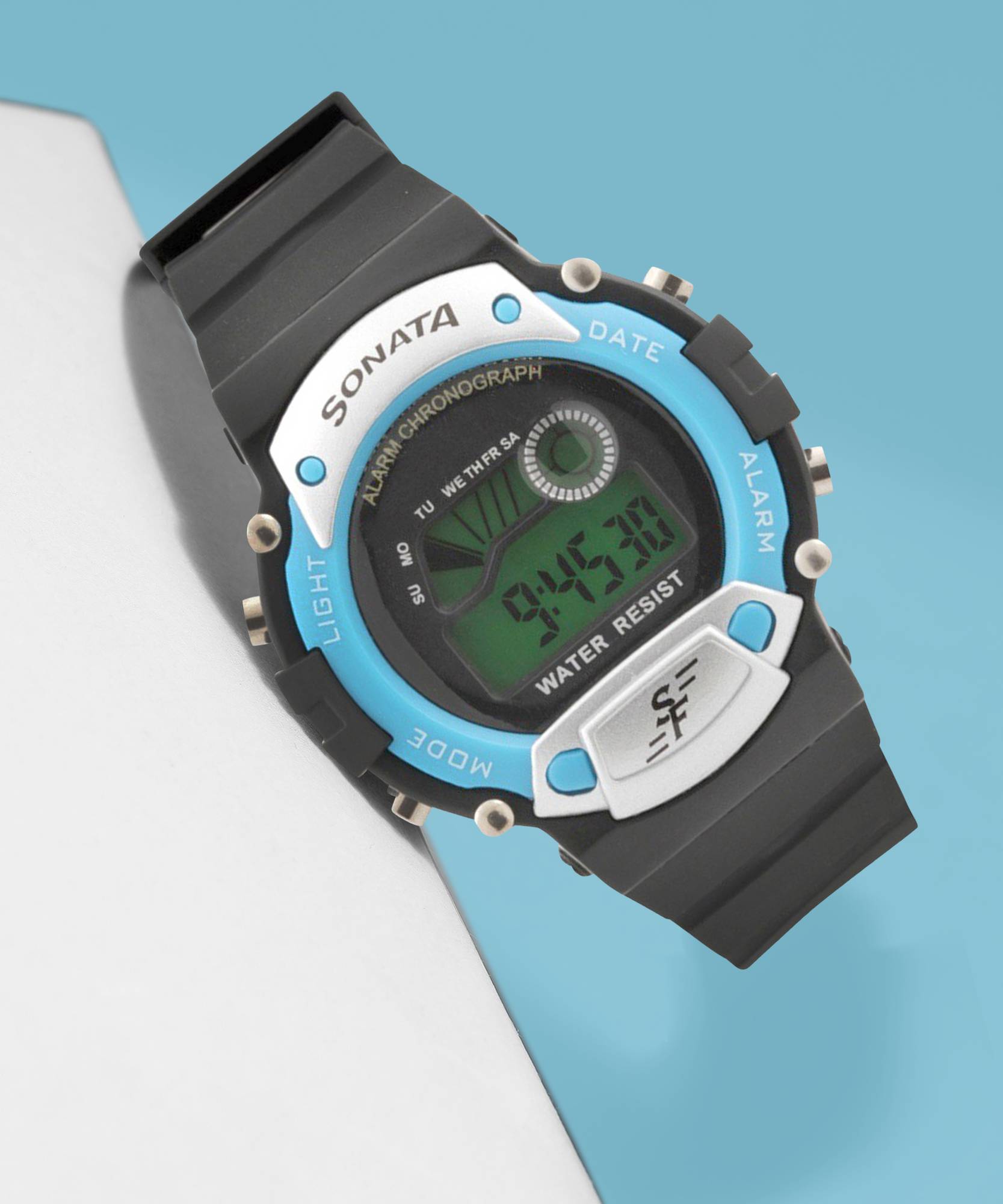 This is digital watch has a rubber strap which fits comfortably on your wrists. It has a buckle clasp and stainless steel back which makes the watch lie perfectly on your wrist. This watch is ideal to wear with any casual clothing and beachwear.You can set an alarm on your watch for any reminders as well as the date and time easily. The watch shows the day on the display and has a backlight which illuminates the background so you can view the time at night.