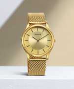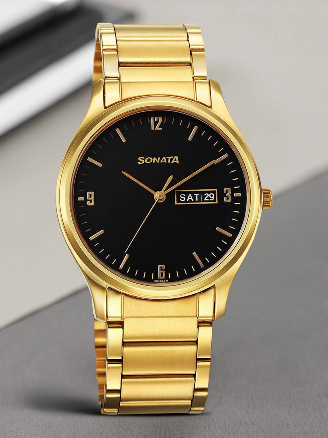SONATA Sonata EStainless Steelentials Black Dial Gold Stainless Steel Strap Analog Watch - For Men