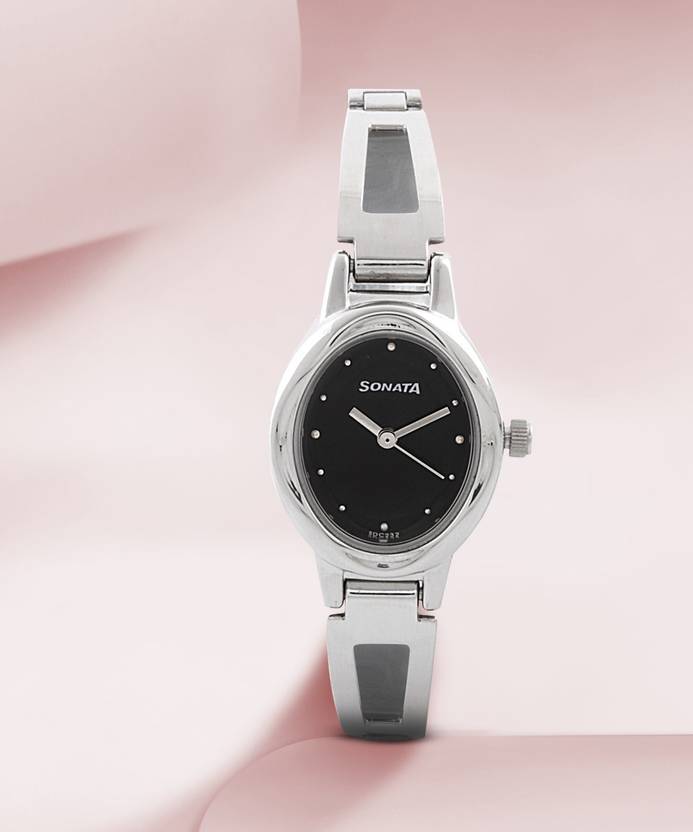 Add this shiny wristwatch to your collection of accessories and impress your friends and family. This watch boasts a lustrous metal strap and an oval dial that complement your outfits, making you look like a diva.