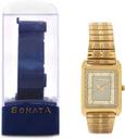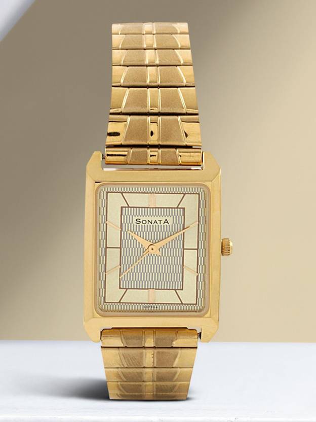SONATA NP7007YM13 Sonata Quartz Champagne Dial Gold Metal Strap Analog Watch - For Men