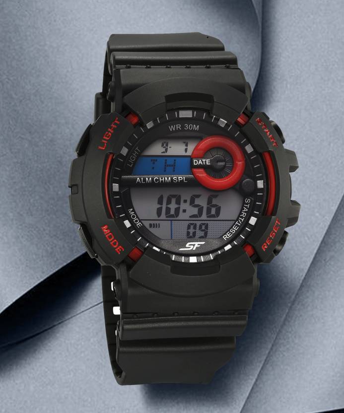 SONATA SF Sporty Digital Black Dial Black Polyurethane Strap Digital Watch - For Men