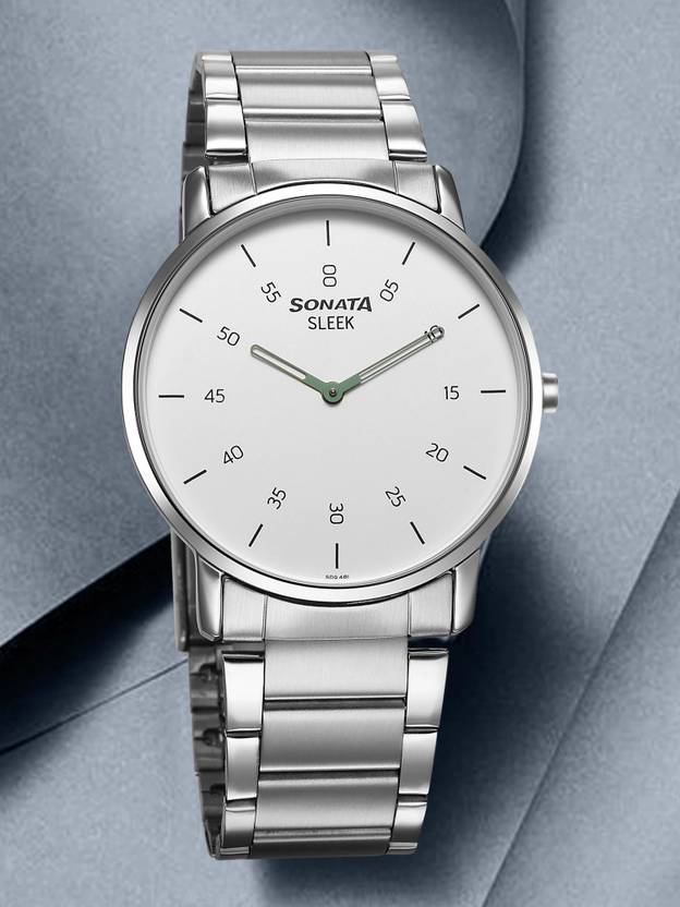 SONATA Sleek 6.0 Analog White Dail With Silver Stainless Steel Strap Analog Watch - For Men