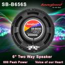 songbird 6.5 Inch Max 2 Way Door Speaker With Inbuilt Tweeter 2 piece in Box A62-SB-B656S Coaxial Car Speaker (600 W)